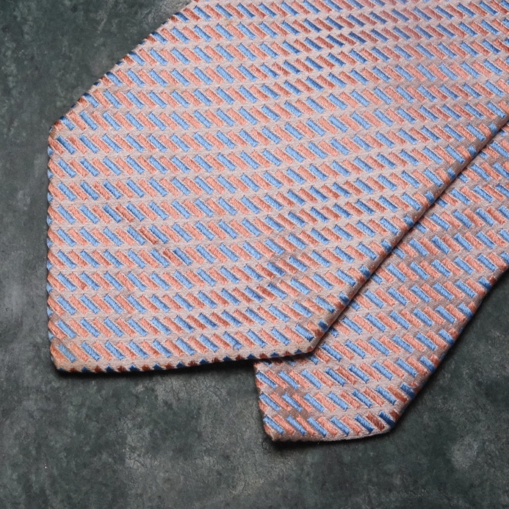 Les deux extrêmes se retrouvent parmi nos cravates géométriques: soit des micro-motifs très faciles à porter qui peuvent s’intégrer facilement dans un registre business, soit des dessins plus imposants soulignés par des textures appuyées à calmer par des basiques.